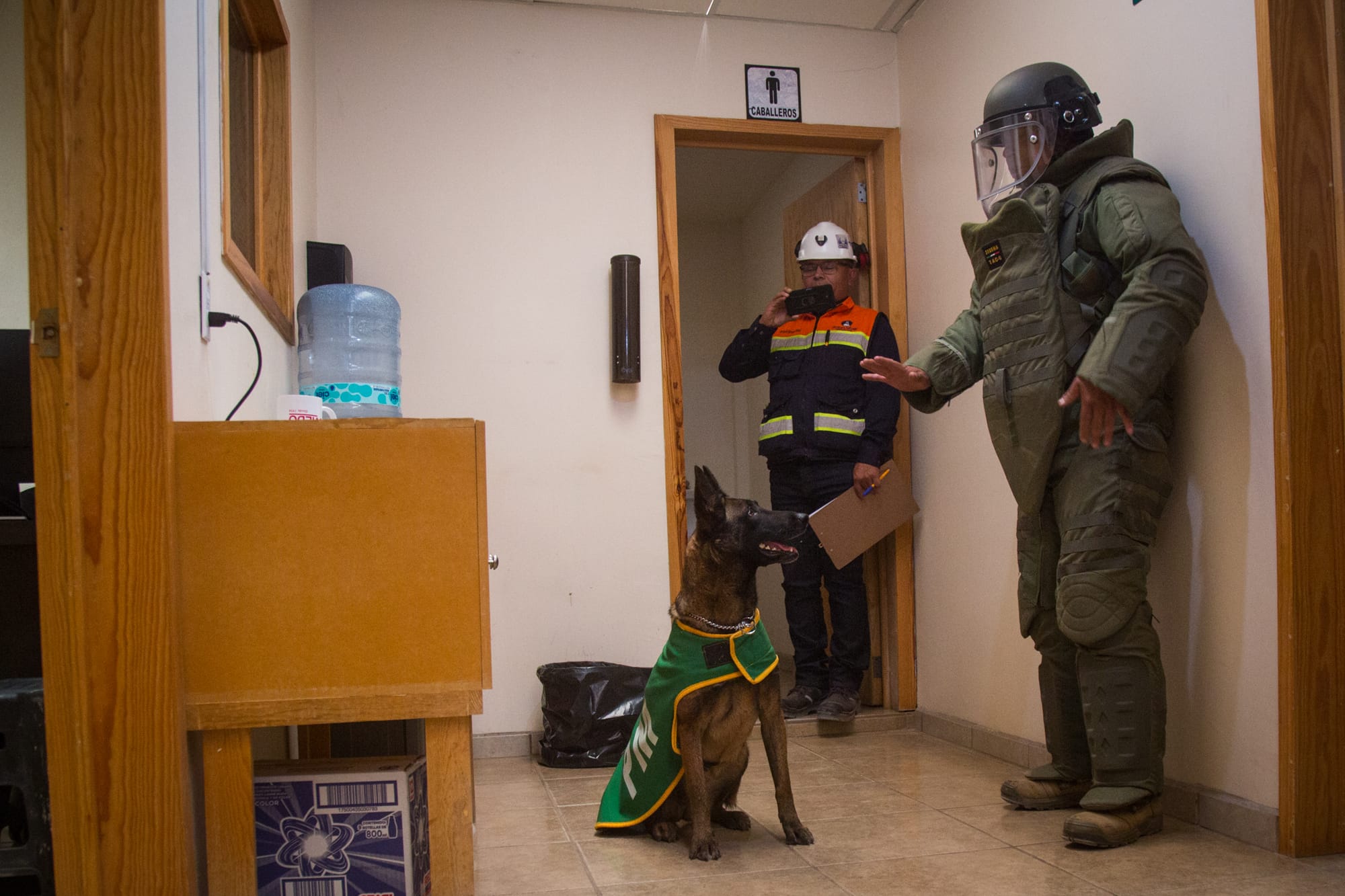 El ejercicio contó con la colaboración de las áreas de Seguridad Patrimonial, Salud y Seguridad, la Cuadrilla de Rescate y la unidad anti-explosivos de la 11va Zona Militar, cuyo binomio canino especializado identificó artefactos peligrosos colocados en las oficinas administrativas y de mina, lo que permitió activar los protocolos de evacuación y poner a salvo al personal.
