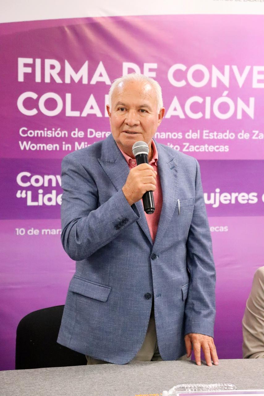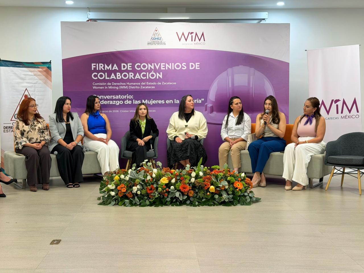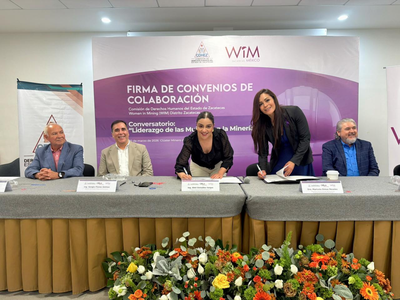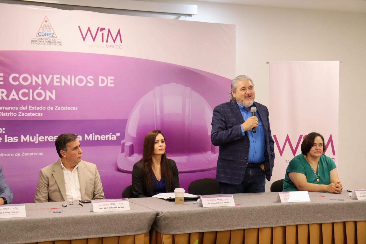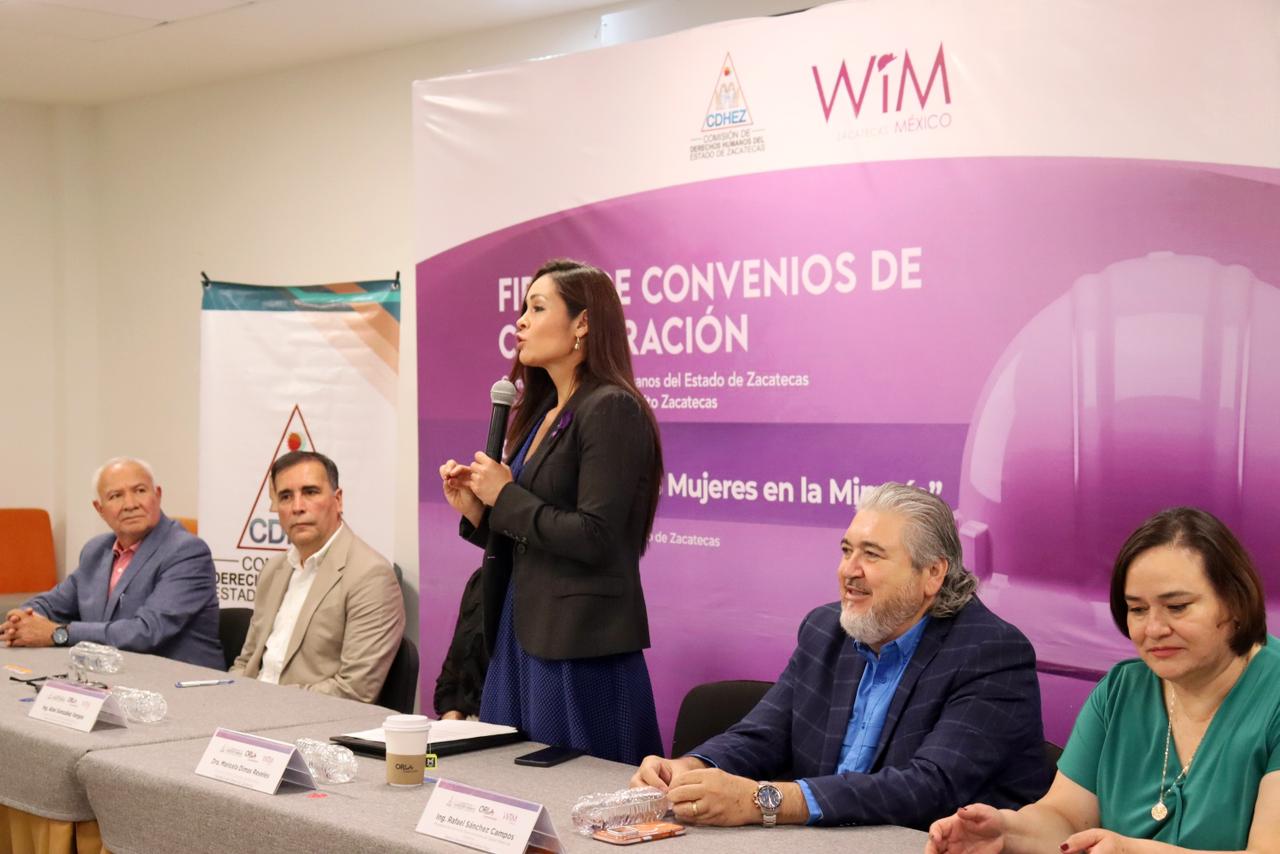 Durante el encuentro se llevó a cabo también la firma de un convenio de colaboración entre la Comisión de Derechos Humanos del Estado de Zacatecas (CDHEZ) y Women in Mining (WIM) Distrito Zacatecas, con el objetivo de fortalecer la promoción de entornos laborales seguros, respetuosos e igualitarios dentro de la industria.