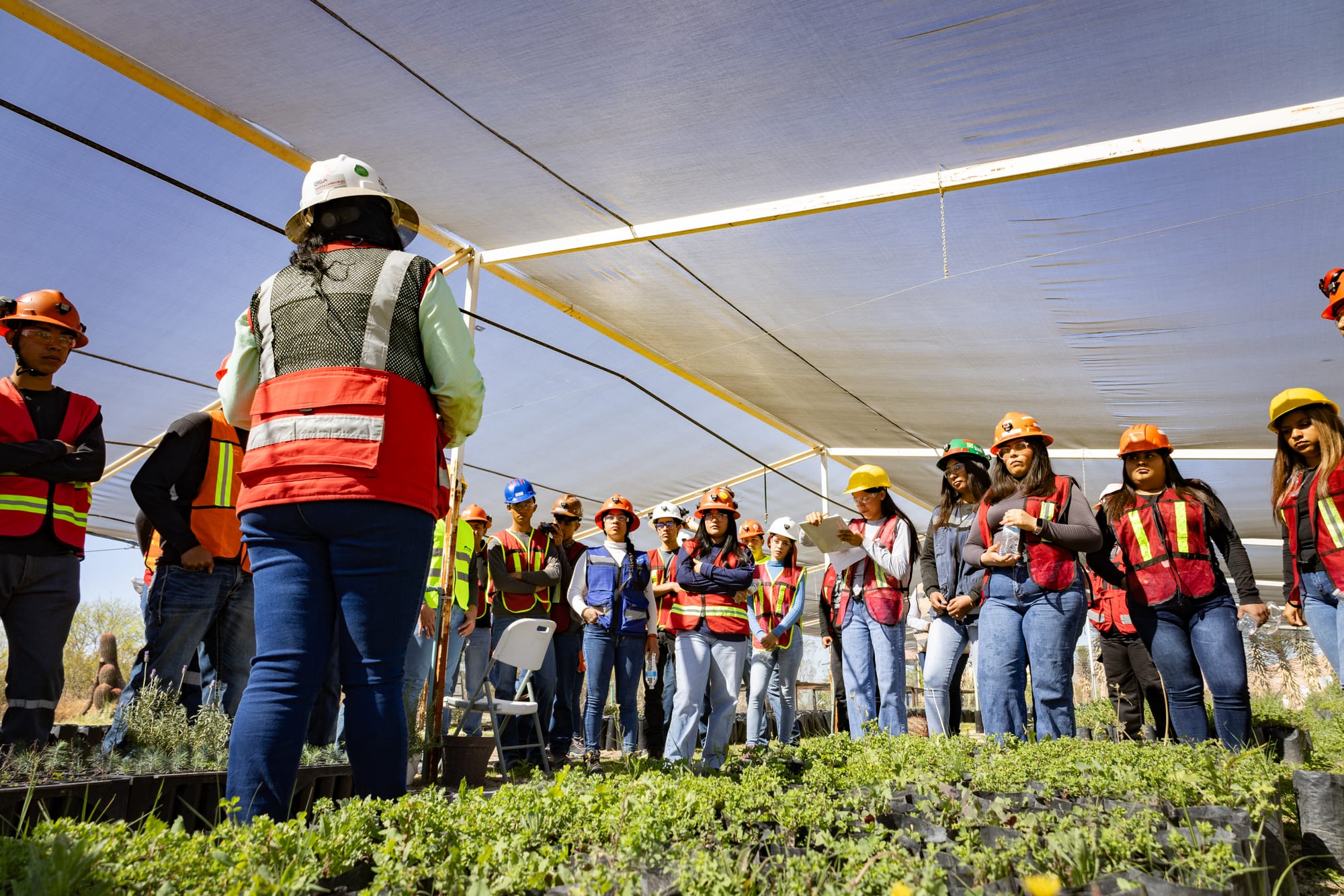 Durante el recorrido, las y los estudiantes tuvieron la oportunidad de conocer de primera mano la operación minera, visitando áreas clave como el vivero del área de Medio Ambiente, donde se desarrollan acciones de conservación y resguardo de especies, así como el Tajo, donde observaron la operación y los equipos de acarreo. Asimismo, recorrieron el área de Procesos, donde comprendieron las etapas que permiten transformar el mineral hasta su resultado final, además de conocer las instalaciones del campamento.